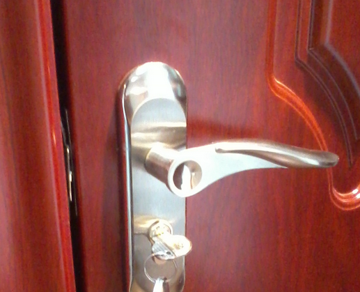 4、配置不能少:門上的鎖是很重要的,當你開門抓住門鎖時,通過手感可以感覺鎖具是否穩(wěn)定,不偏移,跟門體溶為一體,鎖的穩(wěn)定性決定了門的使用質(zhì)量和壽命。